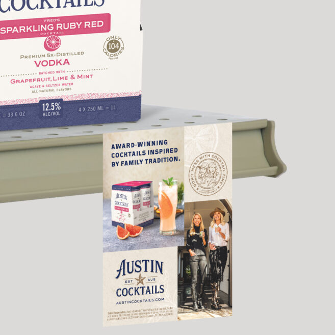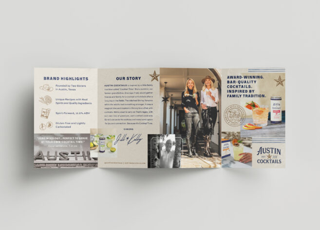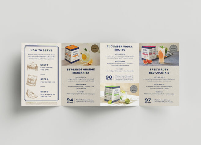 Austin Cocktails is a cocktail company inspired by a lifelong family tradition of a 5:00 Cocktail Time. To get the word out about them beyond the borders of Austin, TX, we developed family scrapbook-inspired key visuals (despite having minimal photography to work with) and then rolled out the execution to dozens of different print and digital applications. I also personally oversaw the production of a custom line of cocktail carts from sketch to render to real-life and ready to serve.